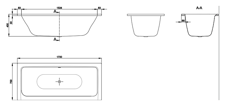 Ванна BETTE Free 6829-000 170x75 см, сталь