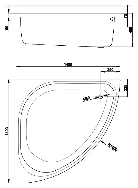 Ванна BETTE Arco 6035-000 140х140 см, сталь