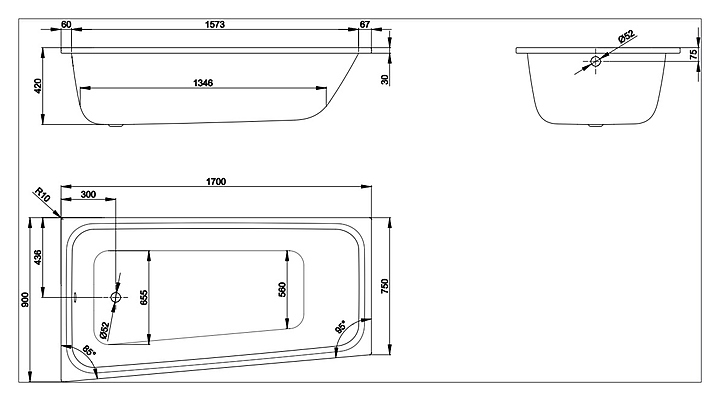 Ванна BETTE Space M 1131-000 170x90 см, сталь
