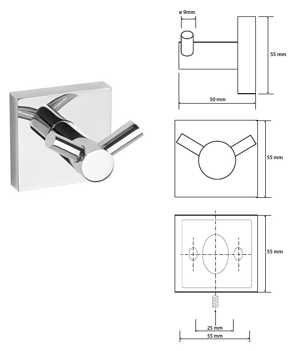Крючок для одежды двойной Bemeta Beta 132106032 используется в ванных комнатах для размещения халатов, белья и полотенец. Серия Beta выполнена в стиле модерн. Элегантные аксессуары этой коллекции идеально дополнят дизайн любой ванной комнаты. Модель имеет скрытые крепления и монтируется на стену. Изделие выполнено из латуни с глянцевым покрытием. Дополнительные характеристики: