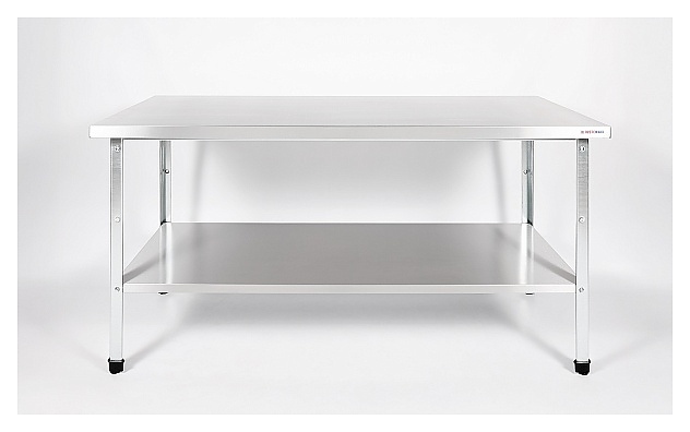 Производственный островной стол Restoinox СП-9/6-П-ЭЦ серии 600 предназначен для обработки продуктов питания, раскатки теста и хранения кухонного инвентаря, также для размещения малогабаритного оборудования на предприятиях общественного питания и торговли. Модель оснащена сплошной полкой, усиленной ребром жесткости из оцинкованной стали. Ножки выполнены из уголка 40х40 мм из оцинкованной стали с пуклевкой, рабочая поверхность и полка - из нержавеющей стали Aisi 430, столешница усилена листом ЛДСП. Особенности: