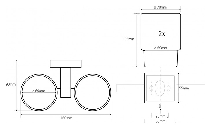 Стаканы для зубных щеток с двойным держателем Bemeta Beta 132110022