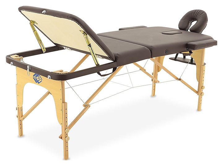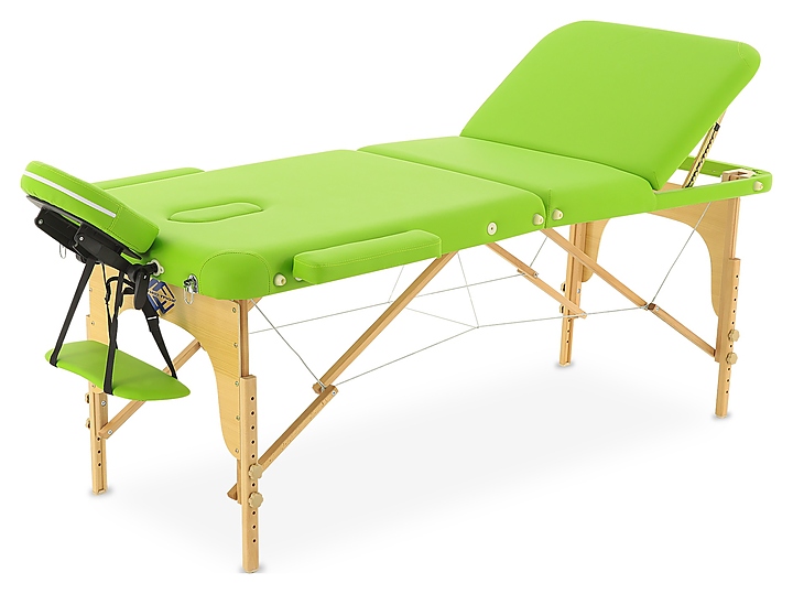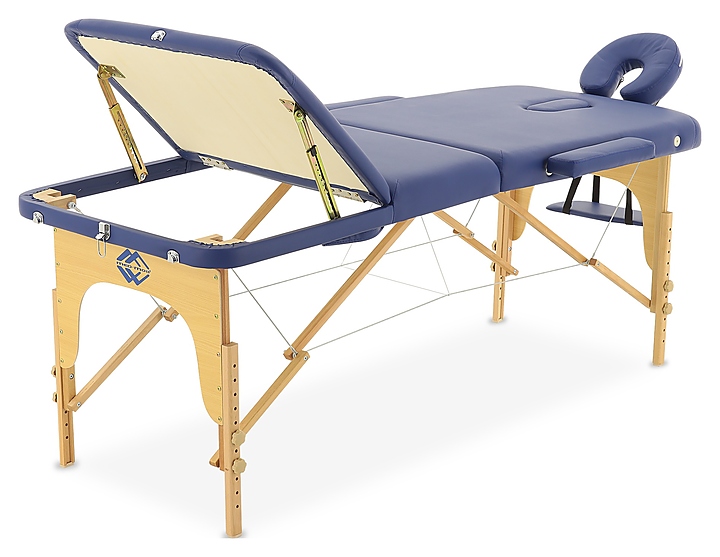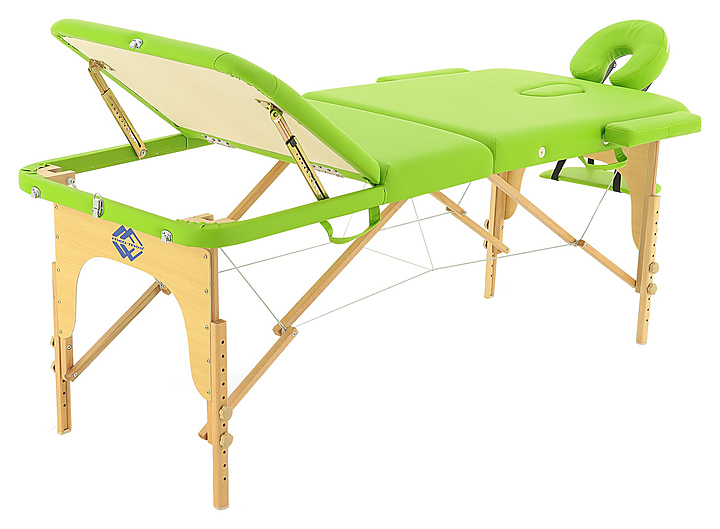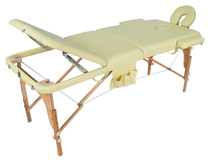 Массажный стол Med-Mos JF-AY01 складной используется в массажных кабинетах, массажных салонах, в домашних условиях и в учреждениях здравоохранения для проведения специалистом массажных, мануальных и лечебно-гимнастических процедур, лечения и профилактики различных заболеваний опорно-двигательного аппарата. Модель оснащена 2 мягкими ручками на торцевой поверхности ложа стола (для его переноски в собранном виде), 4 пластиковыми ножками на противоположной торцевой поверхности ложа стола. Несущая рама стола выполнена из многослойного клееного шпона, ложемент - из многослойного клееного шпона, ножки - из массива дерева и многослойного клееного шпона, наполнитель - из ППУ, обивка - из ПВХ кожи, подголовник - из пластика, складные опоры - из массива дерева, растяжки - из стального троса в мягкой пластиковой трубке. Комплектация: