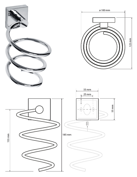 Держатель для фена спиралевидный Bemeta Beta 132117022 используются в ванных комнатах для размещения фена. Серия Beta выполнена в стиле модерн. Элегантные аксессуары этой коллекции идеально дополнят дизайн любой ванной комнаты. Модель имеет скрытые крепления и монтируется на стену. Изделие выполнено из латуни с глянцевым покрытием. Дополнительные характеристики: