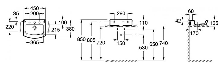 Раковина подвесная Roca Hall 7327624000 45x38 см, керамика