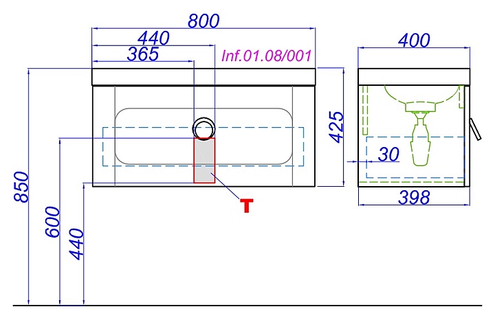 Тумба Aqwella Infinity Inf.01.08/001/BLK 80 см, черный