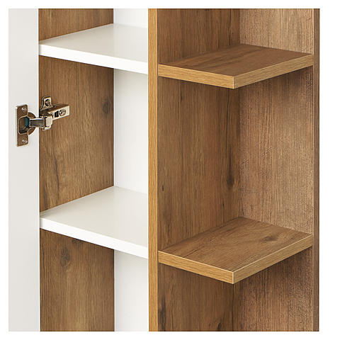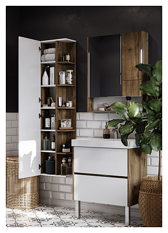 Подвесной пенал AQUATON Сканди 1A253403SDZ90 выполнен в современном стиле и отлично дополнит интерьер любой ванной комнаты. Благодаря подвесной конструкции модель не занимает много места, что позволяет экономить пространство в небольшой ванной комнате, а также облегчает уборку. Модель оснащена одной дверью со стеклянным полотном на фасаде, за которой находятся полки и открытыми полками, где можно разместить все необходимые в ванной комнате принадлежности. Изделие выполнено из ВЛДСП, сочетает в себе белый цвет и дуб рустикальный, что обеспечивает изделию привлекательный внешний вид, а также износостойкость и долговечность. Для установки понадобится набор крепежей для монтажа на стену. Особенности: