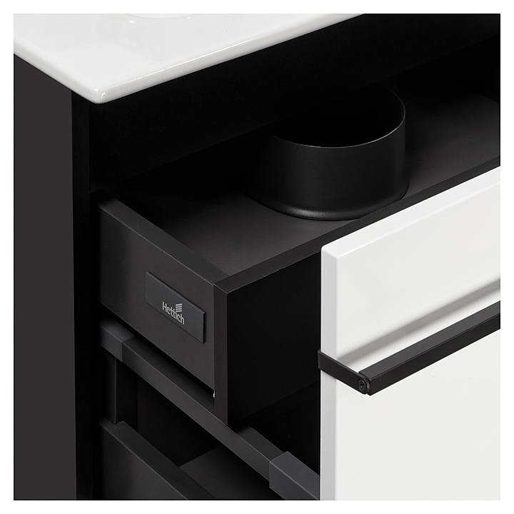 Тумба под раковину Roca Aneto 7857429806 от популярного испанского бренда отлично дополнит интерьер ванной комнаты. Коллекция Aneto отличается четкой геометрией линий, сдержанностью и широким функционалом. Модель оснащена двумя выдвижными ящиками с доводчиками. За фасадом находится небольшой внутренний ящик, открывающийся с помощью системы push-to-open и идеально вмещающий в себя необходимые мелочи. Вместительный внешний ящик подходит для хранения более крупных предметов. Мебель сборная и отличается простым монтажом. Корпус изделия выполнен из вгастойкой ЛДСП и покрыт глянцевой краской. Внимание! Тумба приобретается только вместе с раковинами Roca Victoria-N Unik 732799E000 60х46 см. Особенности: