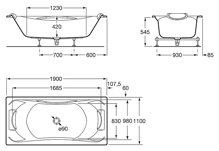 Ванна Roca BeCool 7247989001 190x110, акрил