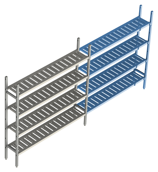 Модульный стеллаж POLAIR LOAD.ME POLY 21AL.4PP50.10Е предназначен для хранения продукции в холодильных и морозильных камерах, кухнях, лабораториях, на предприятиях общественного питания и торговли, а также в прачечных и других местах общего хранения. Модель оснащена 4 регулируемыми по высоте полками-решетками и ножками. Разборный каркас выполнен из анодированного алюминиевого профиля, полки - из армированного полипропилена, ножки - из прочного композитного сплава. Модель представляет собой дополнительную линейную секцию модульной стеллажной системы и может стыковаться в линию с базовой и дополнительной угловой секциями. Комплектация: