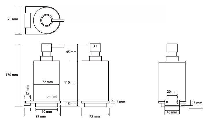 Дозатор жидкого мыла Bemeta Galla 108109010 используется в ванных комнатах для хранения и подачи жидкого мыла. Серия Galla выполнена в стиле шик. Элегантные аксессуары этой коллекции идеально дополнят дизайн любой ванной комнаты. Модель имеет скрытые крепления и монтируется на стену. Изделие выполнено из полирезина и нержавеющей стали с матовым покрытием. Дополнительные характеристики: