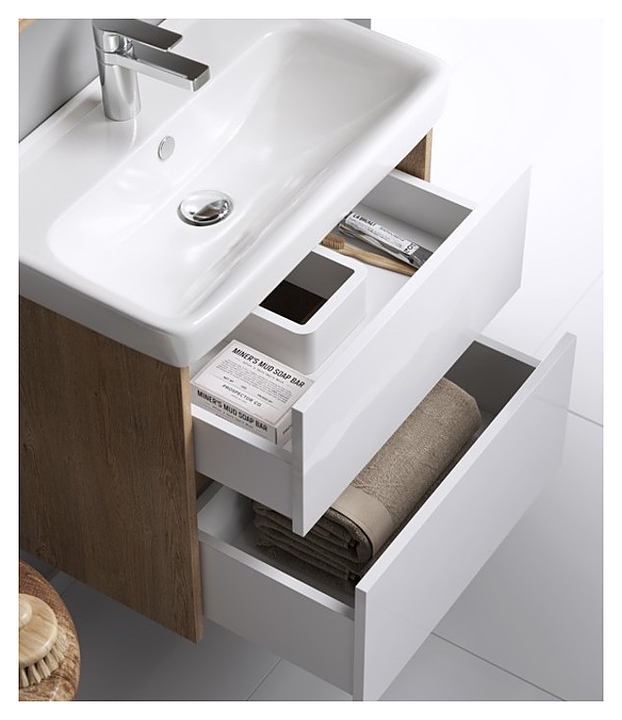 Тумба Aqwella City CI0106DB подходит к большинству интерьеров ванных комнат. Подвесная конструкция и отсутствие ножек создают иллюзию парения в воздухе и упрощают уборку. Ящики тумб оснащены скрытыми направляющими с системой мягкого закрывания. Корпус мебели выполнен из ЛДСП повышенной плотности со структурой дерева. Фасады производятся из ЛДСП и окрашены в белоснежный цвет с высокой степенью глянца полиэфирной краской, которая обеспечивает изделию привлекательный внешний вид, а также износостойкость и долговечность. Тумба используется вместе с раковиной Moduo Slim 60. Для установки понадобится набор крепежей для монтажа на стену. Дополнительные характеристики:
