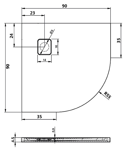 Душевой поддон RIHO BASEL 451 90х90х4,5 см, акрил