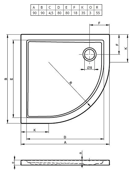 Душевой поддон RIHO ZURICH 280 90х90х4,5 см, акрил