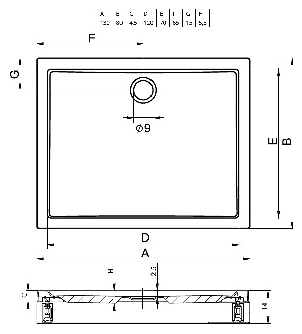 Душевой поддон RIHO DAVOS 243 130х80х4,5 см, акрил