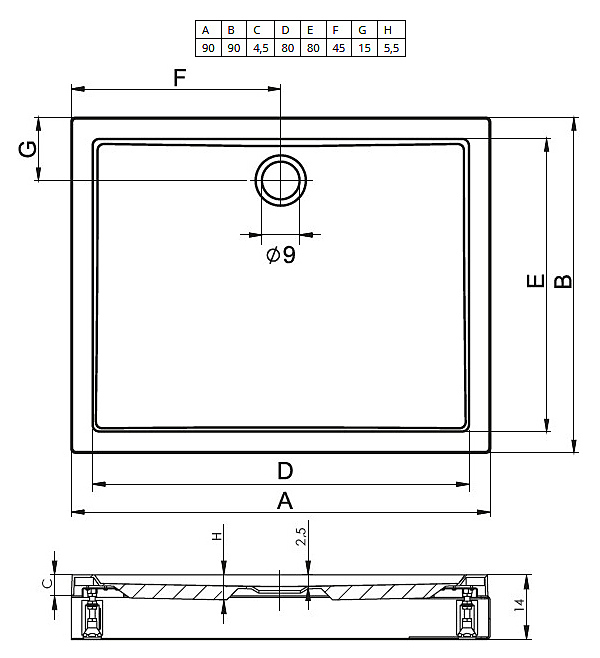 Душевой поддон RIHO DAVOS 251 90х90х4,5 см, акрил