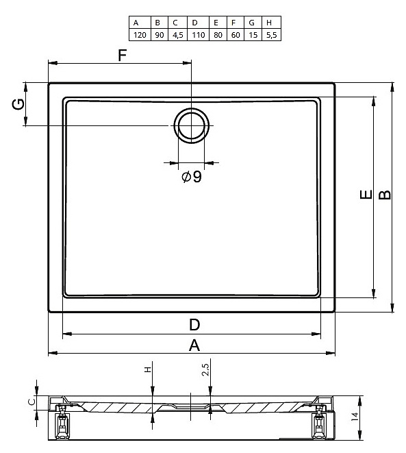 Душевой поддон RIHO DAVOS 255 120х90х4,5 см, акрил