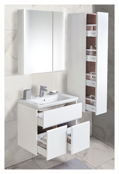 Подвесной пенал Roca Up ZRU9303014 выполнен в современном стиле и легко вписывается в интерьер любой ванной комнаты. Коллекция Up отличается стильным дизайном и функицональностью. Благодаря подвесной конструкции изделие не занимает много места, что позволяет экономить пространство в небольшой ванной комнате, а также облегчает уборку. Модель оснащена ящиком полного выдвижения с системой открывания push-to-open. Корпус выполнен из высококачественной влагостойкой ЛДСП, что обеспечивает изделию привлекательный внешний вид, а также износостойкость и долговечность. Для установки понадобится набор крепежей для монтажа на стену. Комплектация: