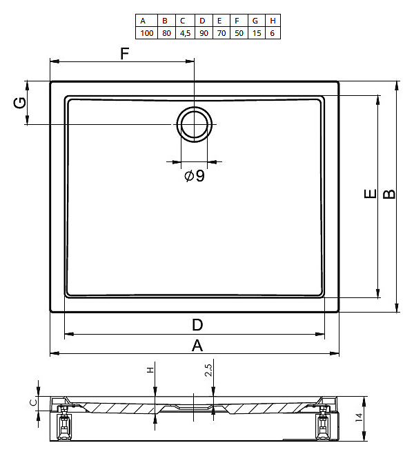 Душевой поддон RIHO DAVOS 273 100х80х4,5 см, акрил