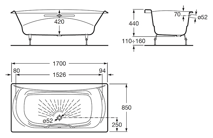 Ванна Roca Akira 72325G000R 170x85, чугун