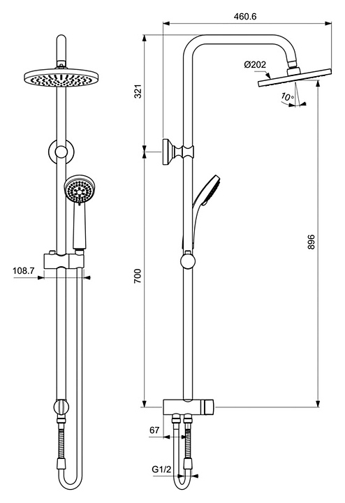Душевая стойка Vidima Balance BA274AA предназначена для установки в ванных комнатах. Модель оснащена круглой лейкой, круглым верхним душем и 2 шлангами. Верхний душ, ручная лейка и слайдер с кнопкой изготовлены из пластика, душевая труба выполнена из латуни, шланги - из металла. Комплектация: