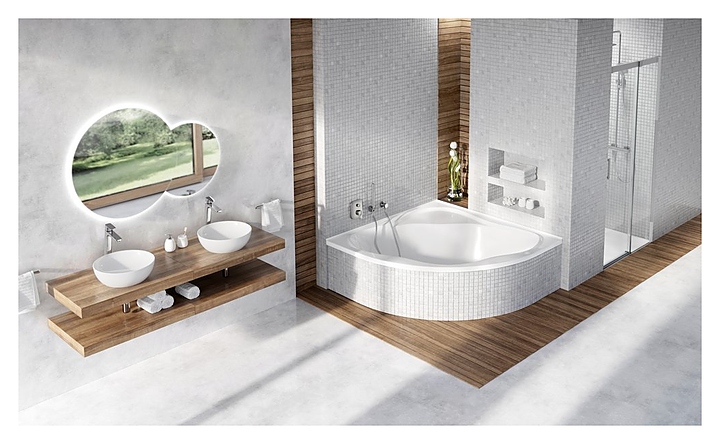 Угловая ванна Ravak NewDay от популярного чешского бренда дополнит интерьер ванной комнаты. Благодаря угловой конструкции можно легко решить сразу две задачи - сэкономить пространство комнаты и заполнить свободный угол. Диагональное расположение обеспечивает большой простор для телодвижений, а удобный наклон спинной части и центральный слив воды дарят комфорт при совместном купании. Модель оснащена сиденьем над уровнем воды и широкими бортами, на которых можно разместить необходимые для водных процедур аксессуары. Изделие выполнено из акрила, который обладает высокой теплоёмкостью, долго не позволяя воде остывать, и способностью поглощать шум при наборе воды, на этой ванне не появляются царапины, она не темнеет и не ржавеет. Особенности:
