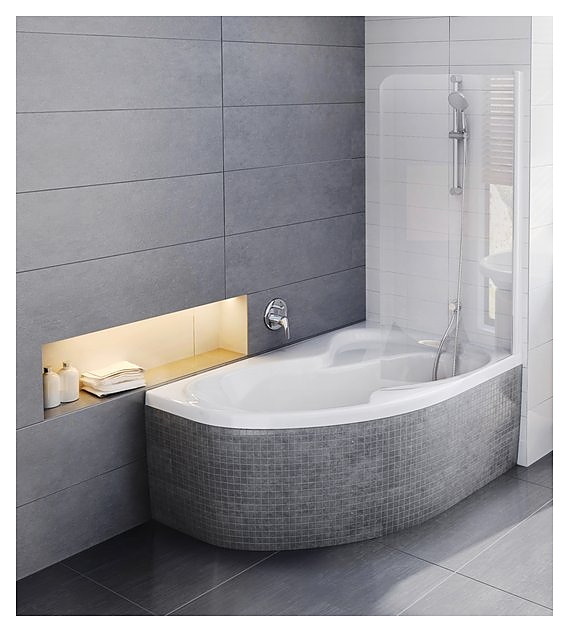 Асимметричная ванна Ravak Rosa II от популярного чешского бренда украсит интерьер ванной комнаты. С помощью угловой конструкции можно легко решить сразу две задачи - сэкономить пространство комнаты и заполнить свободный угол. Модель имеет необычную форму и эргономичную переднюю панель, которая облегчает доступ к ванне. Зона принятия душа отличается широким плоским дном и интегрированным сиденьем, что позволяет принимать душ как стоя, так и сидя. Для максимального комфорта можно дополнить гидромассажем. Изделие выполнено из акрила, который обладает высокой теплоёмкостью, долго не позволяя воде остывать, и способностью поглощать шум при наборе воды, на этой ванне не появляются царапины, она не темнеет и не ржавеет. Особенности: