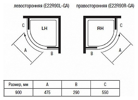 Душевой уголок Jacob Delafon E22R90R-GA CONTRA ¼ круга 90х90 см, правосторонняя