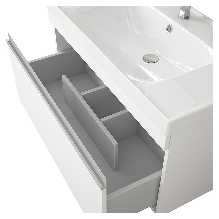 Тумба Dreja Grace 60 99.0909 в современном стиле дополнит интерьер любой ванной комнаты. Подвесная конструкция и отсутствие ножек создают иллюзию парения в воздухе и упрощают уборку. Отличительной особенностью данной тумбы является ящик, оснащенный встроенным органайзером нового типа. Корпус выполнен из ЛДСП и покрыт глянцевой эмалью, которая характеризуется стойкостью к небольшим механическим повреждениям и простотой в уходе. Фасады изготовлены из высококачественной окрашенной МДФ, которая обеспечивает изделию привлекательный внешний вид, а также износостойкость и долговечность. Тумба используется вместе с раковиной Grace 60. В комплект поставки входят навесные крепления. Шурупы (крючки) с дюбелями в комплект поставки не входят и приобретаются отдельно. Особенности: