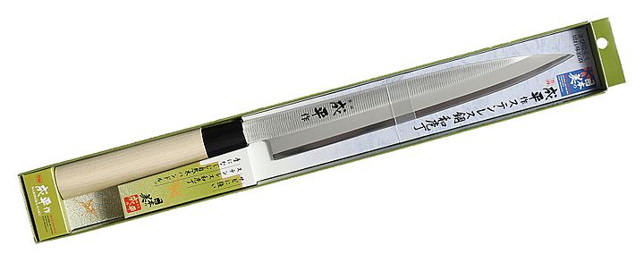 Нож янагиба Fuji Cutlery FC-76 предназначен для нарезки свежей рыбы и морепродуктов в ресторанах, кафе. Лезвие выполнено из высококачественной нержавеющей стали Mo-V, устойчивой к коррозии, рукоятка - из дерева. Особенности: