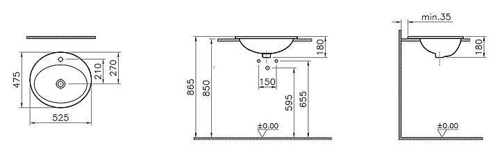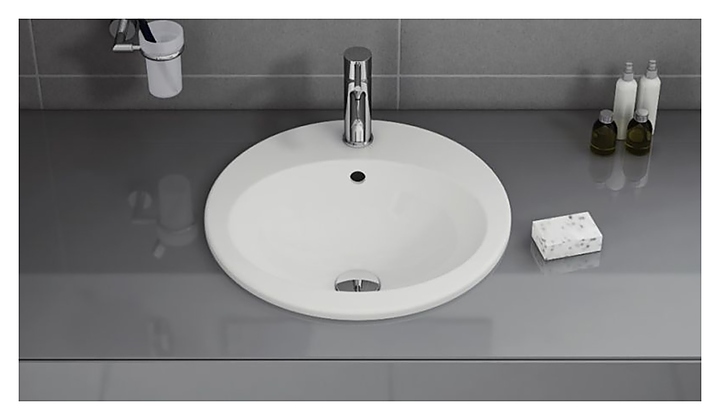 Накладная раковина Vitra Counter Basin 5468B003-0001 локаничных форм легко вписывается в интерьер любой ванной комнаты. Благодаря накладной конструкции монтаж раковины можно осуществить самостоятельно, не прибегая к помощи профессионалов. Изделие выполнено из санфарфора, который обладает повышенной прочностью, устойчив к негативным внешним факторам, таким как грязь и запахи, а так же способен долгое время сохранять идеальную белизну. Особенности: