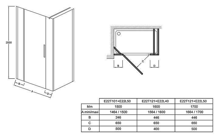 Дверь душевая Jacob Delafon E22T101-GA CONTRA 100х200 см, распашная, угловая