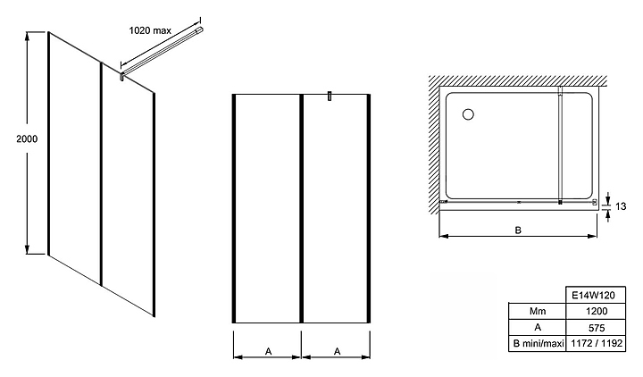 Перегородка душевая Jacob Delafon E14W120-BLV SERENITY 120х200 см, фиксированная