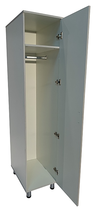 Медицинский шкаф Мед Мебель MD ШМо 15.01 предназначен для размещения одежды сотрудников в медицинских учреждениях. Модель оснащена полкой для головных уборов, штангой для тремпелей, дверцей и регулируемыми по высоте ножками. Шкаф выполнен из ЛДСП.