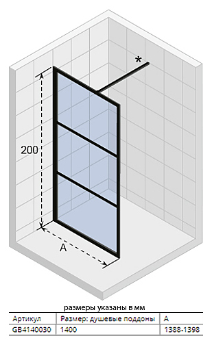 Душевая перегородка RIHO GRID GB402 140х30х200 см