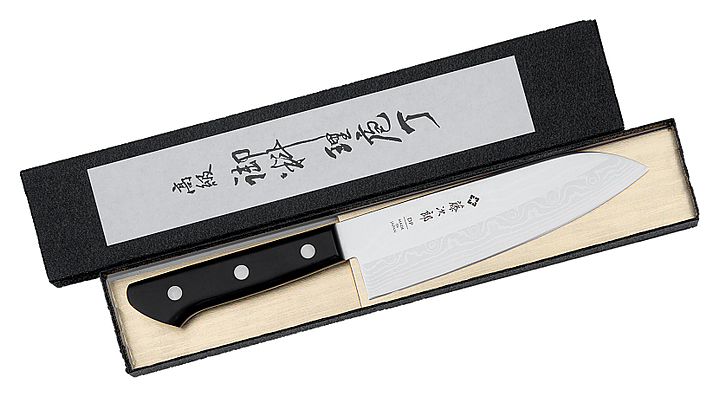 Нож сантокуTojiro F-331 предназначен для чистки, нарезания, шинкования любых продуктов в ресторанах, кафе. Лезвие выполнено из высококачественной тридцатисемислойной стали, рукоятка - из стабилизированной древесины. Особенности: