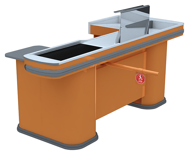 Кассовый бокс Commerce Renessance Супермак 3520 см предназначен для упрощения обслуживания покупателей и проведения с ними взаиморасчетов в супермаркетах. Модель оснащена тумбой кассира, полками в основании, блоком розеток и боковой соединительной панелью. Изделие выполнено из стали, покрытой порошковой краской. В комплект поставки входят палочка "Следующий покупатель". Модель доступна к заказу в синем, красном, оранжевом, желтом, темно-зеленом, светло-зеленом, сером, черном и фиолетовом цвете. Особенности: