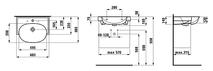 Раковина накладная Laufen The New Classic 8.1385.3.000.104.1
