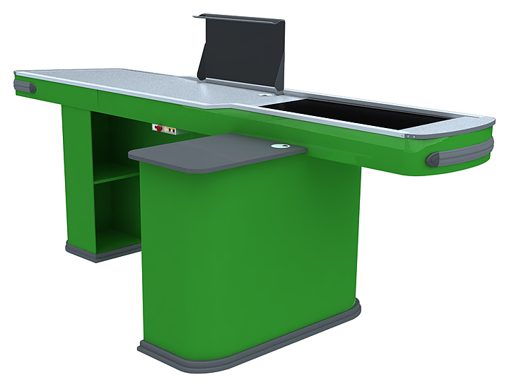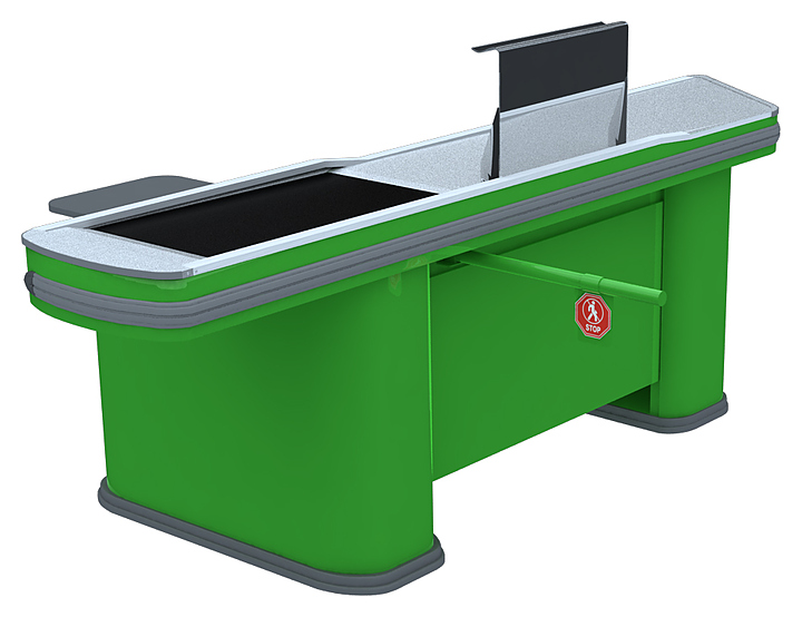 Кассовый бокс Commerce Renessance Дискаунт 2050 см предназначен для упрощения обслуживания покупателей и проведения с ними взаиморасчетов в супермаркетах. Модель оснащена тумбой кассира, полками в основании, блоком розеток и боковой соединительной панелью. Изделие выполнено из стали, покрытой порошковой краской. В комплект поставки входят пульт управления и педаль движения транспортера. Модель доступна к заказу в синем, красном, оранжевом, желтом, темно-зеленом, светло-зеленом, сером, черном и фиолетовом цвете. Особенности: