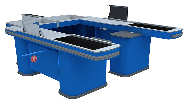 Кассовый бокс Commerce Renessance Гипервайд 3550 см предназначен для упрощения обслуживания покупателей и проведения с ними взаиморасчетов в гипермаркетах. Модель оснащена 2 тумбами кассира, полками в основании, блоком розеток и боковой соединительной панелью. Изделие выполнено из стали, покрытой порошковой краской. В комплект поставки входят пульт управления и педаль движения транспортера. Особенности: