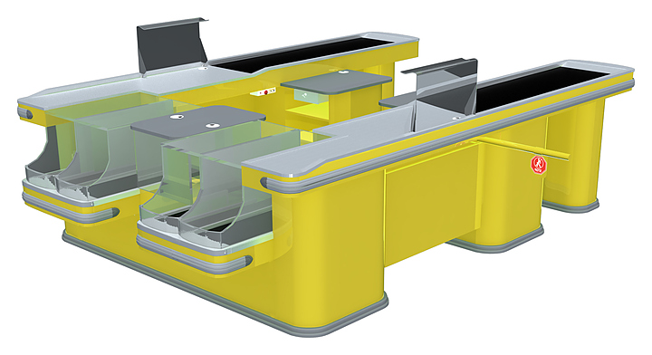 Кассовый бокс Commerce Renessance Гиперстеп 3800 см предназначен для упрощения обслуживания покупателей и проведения с ними взаиморасчетов в гипермаркетах. Модель оснащена удобными полочками для покупательских сумок, двумя тумбами, полками в основании, блоком розеток и боковой соединительной панелью. Изделие выполнено из стали, покрытой порошковой краской. В комплект поставки входят пульт управления и педаль движения транспортера. Модель доступна к заказу в синем, красном, оранжевом, желтом, темно-зеленом, светло-зеленом, сером, черном и фиолетовом цвете. Особенности: