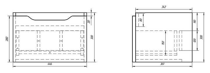 Тумба Dreja Tiny 50 99.1901 в современном стиле идеально подходит для маленьких пространств. Строгий минимализм, лаконичный дизайн, глянцевая поверхность фасада - все это выделяет коллекцию среди остальных. Корпус выполнен из ЛДСП и покрыт глянцевой эмалью, которая характеризуется стойкостью к небольшим механическим повреждениям и простотой в уходе. Фасады изготовлены из высококачественной окрашенной МДФ, которая обеспечивает изделию привлекательный внешний вид, а также износостойкость и долговечность. Тумба используется вместе с раковиной Mini 50 195032. Ножки и набор крепежей для монтажа на стену в комплект поставки не входят и приобретаются отдельно. Особенности: