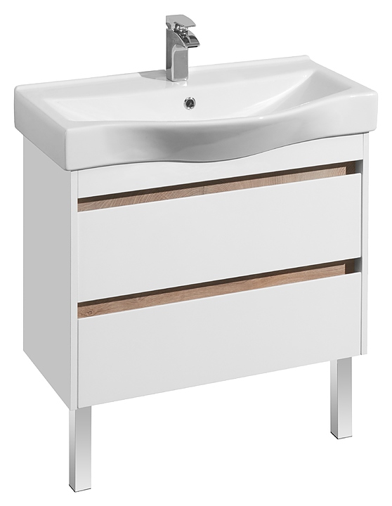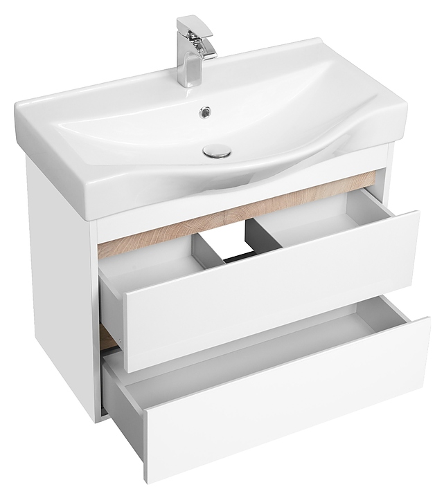 Тумба AQUATON Нортон 80 1A248901NT010 выполнена в современном стиле. Благодаря подвесной конструкции изделие не занимает много места и обеспечивает легкую уборку в ванной комнате. Модель оснащена двумя вместительными выдвижными ящиками без лицевой фурнитуры, открытие ящиков реализовано за счет удобного выреза на фасаде. Корпус изделия выполнен из влагостойкой ЛДСП, фасады из высококачественной МДФ и окрашены белоснежной глянцевой полиэфирной краской ультрафиолетового отверждения, декоративная вставка из ЛДСП с фактурой натурального дерева дуб эндгрейн, что обеспечивает изделию привлекательный внешний вид, а также износостойкость и долговечность. Тумба используется вместе с раковиной Беверли 80 1WH302422. Особенности: