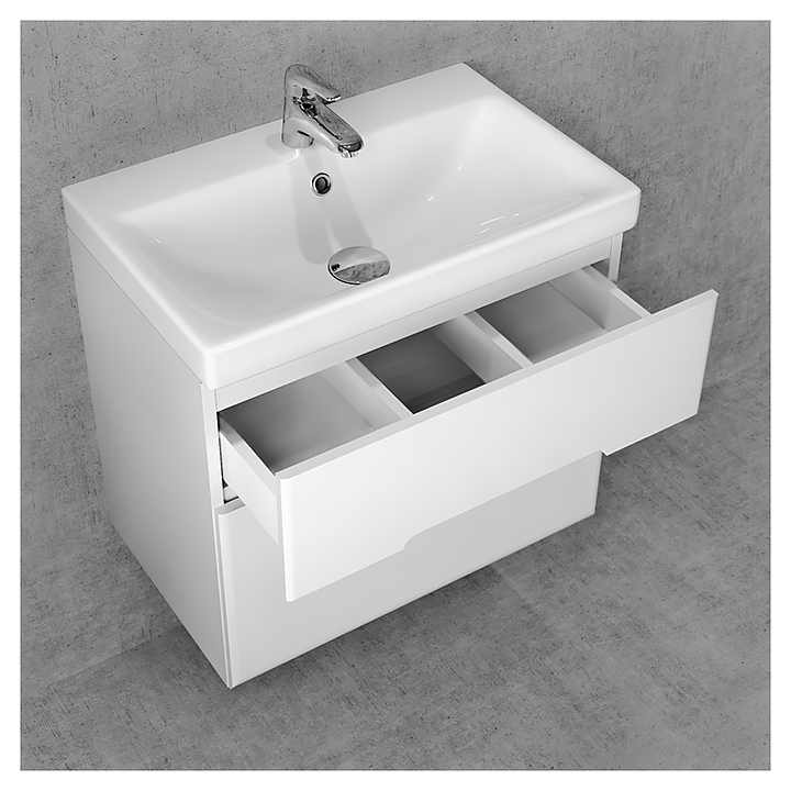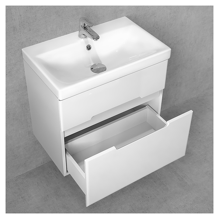 Тумба Jorno Moduo Slim 60 Mod.01.60/P/W сочетает в себе лаконичность и функциональность. Благодаря своей компактности идеально подходит для малогабаритных помещений. Подвесная конструкция и отсутствие ножек создают иллюзию парения в воздухе и упрощают уборку. Корпус выполнен из влагостойкой ЛДСП, фасад из МДФ и покрыты белой глянцевой ПВХ пленкой, предназначенной для использования во влажных помещениях, что обеспечивает изделию привлекательный внешний вид, а также износостойкость и долговечность. Тумба используется вместе с раковиной Cesanit Moduo Slim 60 P-UM-MOD6OSL/1. Изделие поставляется с комплектом креплений. Комплектация: