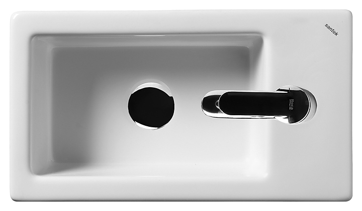 Мини-раковина Santek Эрис 46 1WH301972 выполнена в современном стиле. Накладная конструкция изделия позволяет произвести быстрый монтаж, экономит место и обеспечивает изящный внешний вид. Изделие выполнено из керамики, которая обладает повышенной прочностью и устойчивостью к негативным внешним факторам, а так же долгое время сохраняет идеальную белизну и не впитывает запахи и грязь. Раковина используется вместе с тумбами Вита 1A221401VTD70, Бэлла 1A221501BBAZ0 и Эклипс М 1A172801EK49L, Эмма 1A221601EAD80. Смеситель в комплект поставки не входит и приобретается отдельно. Комплектация: