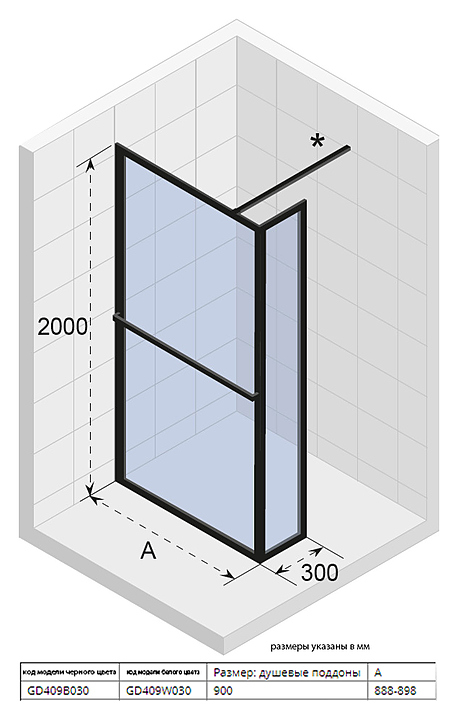 Душевая перегородка RIHO LUCID GD402 90х30х200 см, L/R, черный