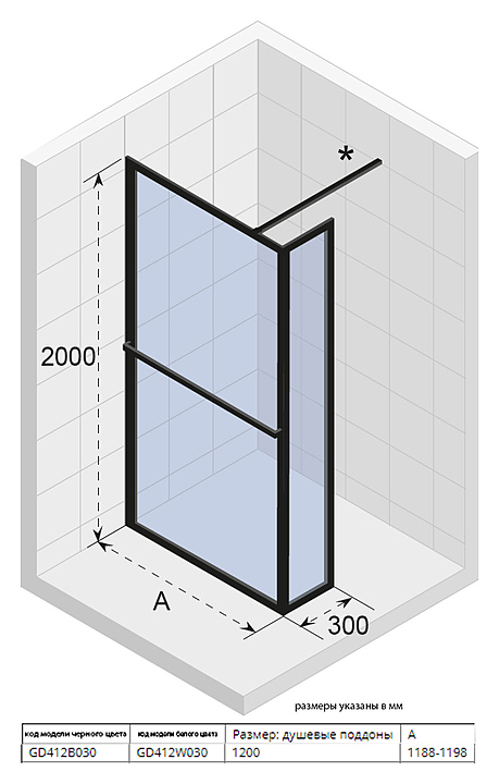 Душевая перегородка RIHO LUCID GD402 120х30х200 см, L/R, черный