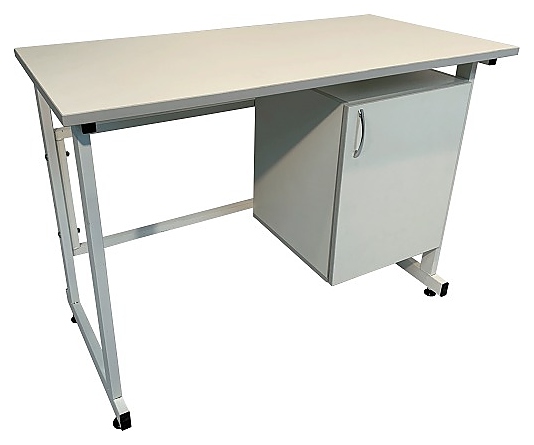Стол лабораторный Мед Мебель СЛ 12.003 с РУ предназначен для организации рабочего места сотрудника медицинской лаборатории. Модель оснащена боковой тумбой с дверцей и регулируемыми по высоте ножками за счет винтовых опор-регуляторов. Каркас обеспечивает жесткость, устойчивость и прочность конструкции. Столешница выполнена из ЛДСП, каркас - из стального профиля, покрытого порошковой краской. Стол поставляется с регистрационным удостоверением. Особенности: