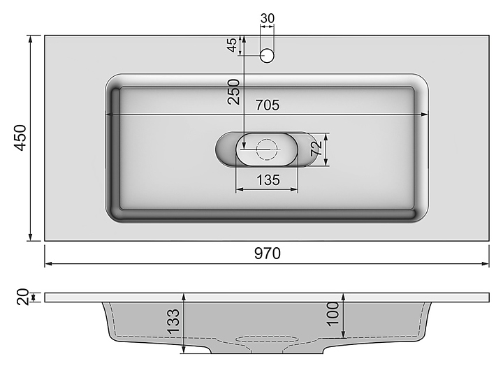 Раковина Jorno Modul 100 Mol.08.100/W 97x45 см, мрамор