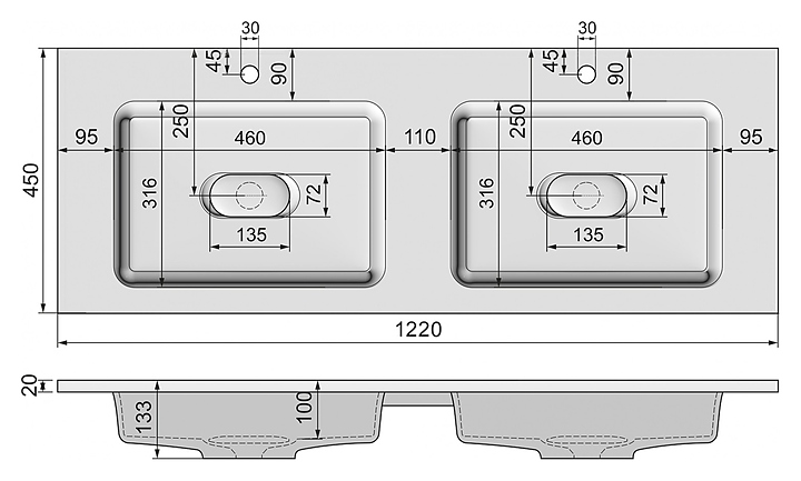 Раковина Jorno Modul 120 Mol.08.120/W 122x45 см, мрамор